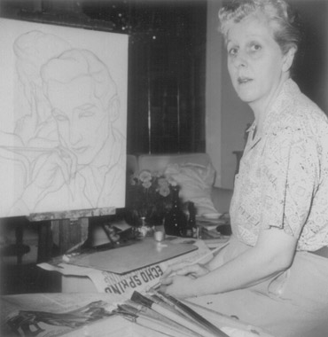 However, she painted the work in 1950 – and it is one of the few paintings with direct documentation for exactly when she painted it. A series of snapshot photos dated 1950 show Hutchinson working at her easel.