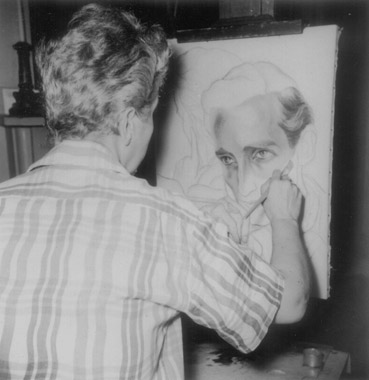 Mary E. Hutchinson’s portrait of her friend “Don Sheldon” (1950) is currently featured on my digital catalogue site at http://meh.omeka.net. Hutchinson and Sheldon became friends after she moved away from New York and back to her home town, Atlanta, in 1945. I believe that Sheldon was a window dresser for Rich’s Department Store who later attempted a career as a stand-up comedian.